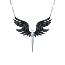 - Angel Black Stones Pendant Necklace 925 Sterling Silver