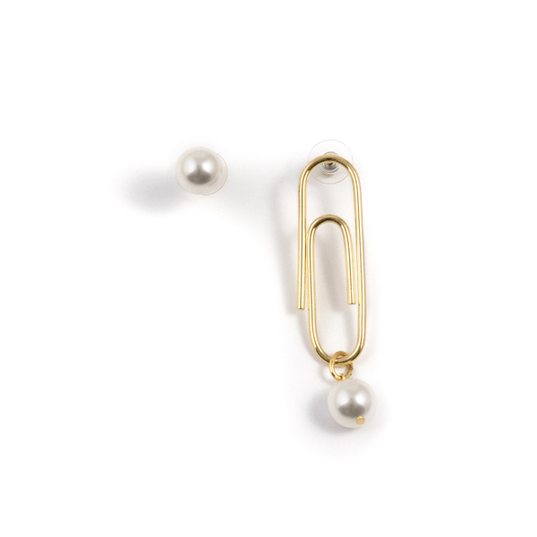 Asymmetric Earrings 18K Gold-Plated Women's Studs Pearl Paperclip