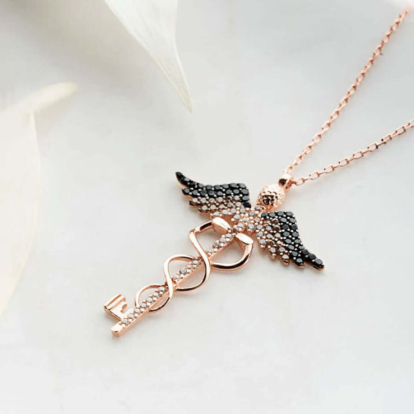 Caduceus Key Pendant Medical Symbol Necklace