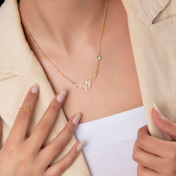 Create a one-of-a-kind necklace that reflects your unique style and personality. With customizable options for names, words, gemstones, and chain length, this piece will be crafted by hand specifically for you.