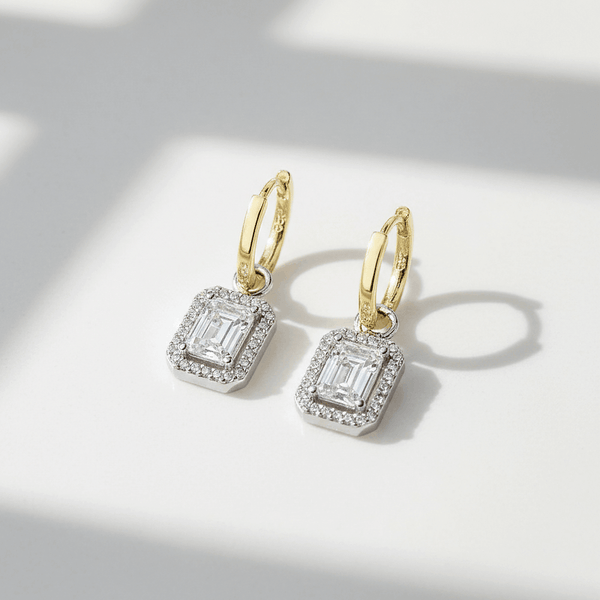 For the woman who curated her wardrobe with intention, these earrings are the ultimate finishing touch. The clean, geometric lines of the baguette-cut stone offer a nod to Art Deco architecture, while the shimmering halo provides just enough sparkle to feel special without being "too much". These halo drop earrings are designed to make you feel radiant from the first sip of coffee to the last dance of the night.