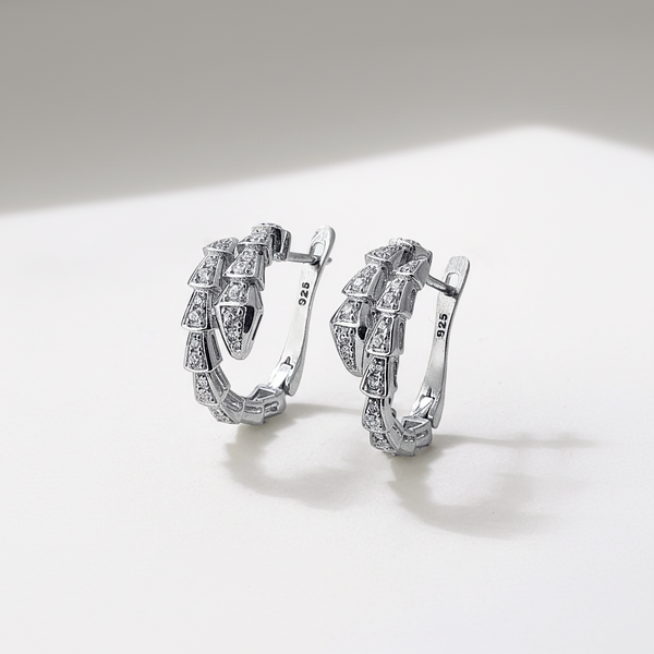 Forget plain hoops — these snake‑inspired earrings coil around your ears with gold‑plated silver and cubic zirconia stones. The geometric design creates a textured shimmer that feels equal parts polished and rebellious. Jewelry that knows how to charm and strike.