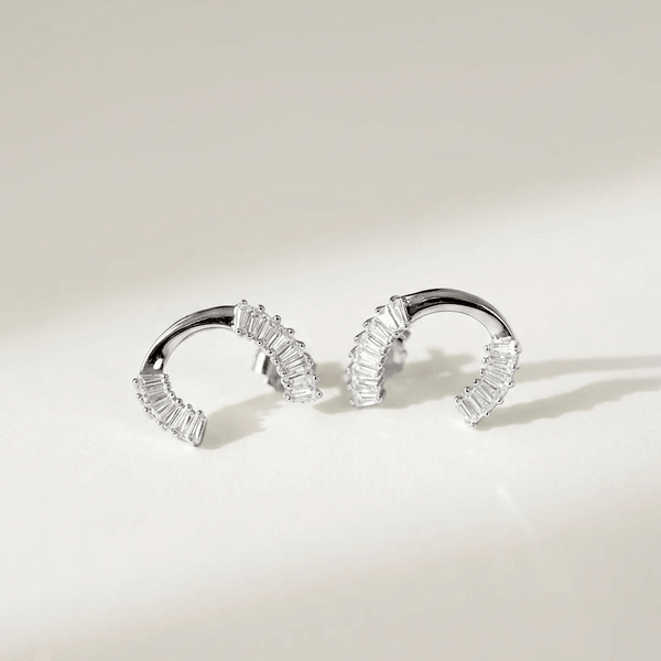 These statement earrings pack serious sparkle with their sleek baguette stones arranged in eye-catching style. Crafted from authentic 925 silver, they're designed for anyone ready to shine. The linear stone cuts create a modern, sophisticated vibe that works just as well at brunch as it does on the dance floor.
